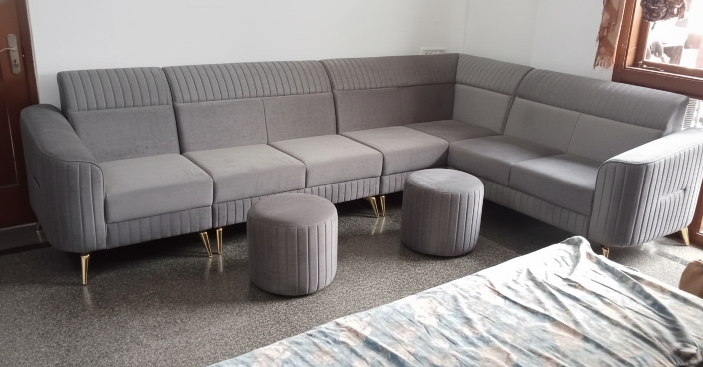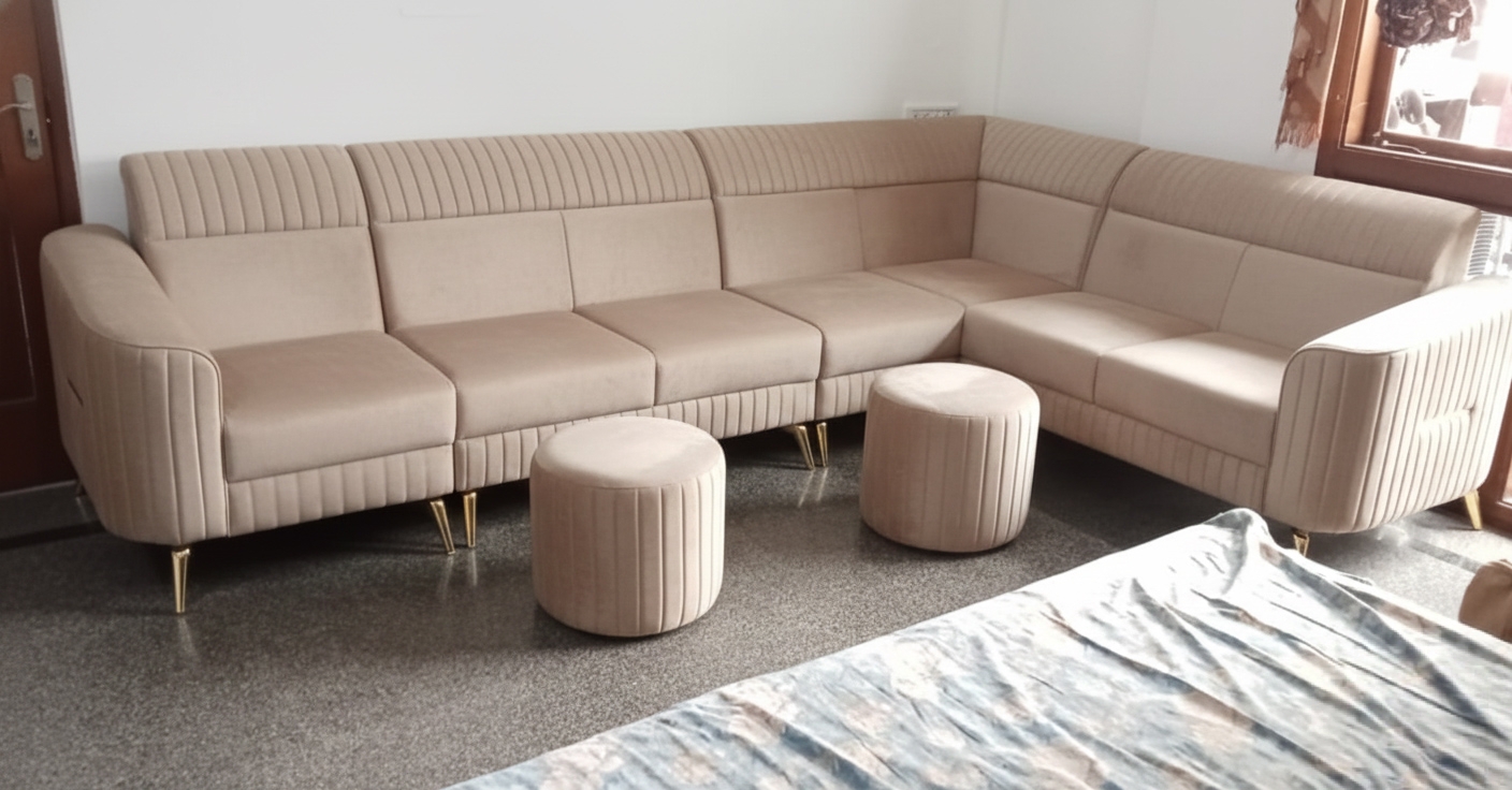 The Lorencia Luxe Modular Sofa is crafted for elegance, comfort, and modern versatility. Its modular design, vertical channel tufting, and plush velvet upholstery make it a statement piece in any living space. Built with a solid wood frame and complemented by gold-finish metal legs, this sofa offers durability, flexibility, and luxury. Perfect for high-end homes, boutique hotels, and upscale lounges, the Lorencia Sofa delivers both style and comfort.