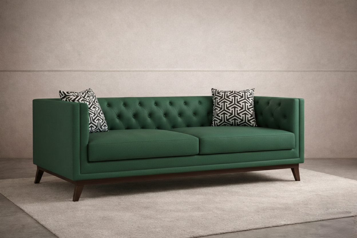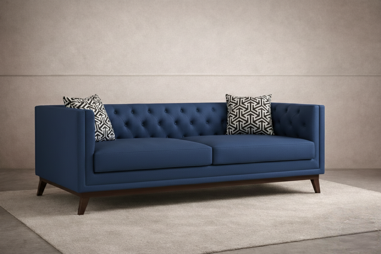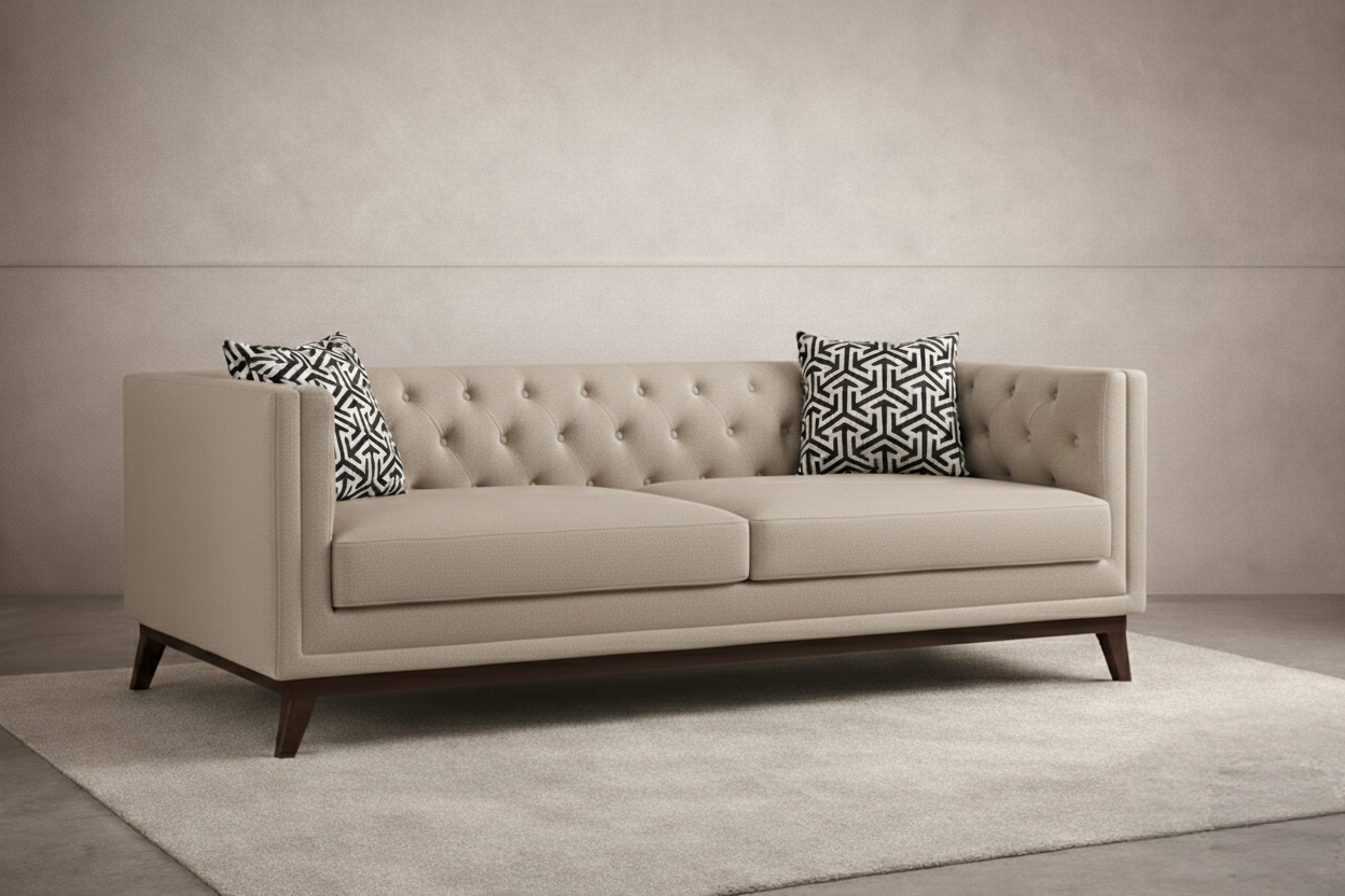 The Ravello Tufted Sofa embodies mid-century sophistication with a modern twist. Defined by its beautifully tufted backrest, structured box arms, and clean linear silhouette, Ravello brings an effortless sense of style to any living room. Crafted for homeowners and interior designers who appreciate elevated yet functional design, this sofa introduces warmth, structure, and an inviting seating experience.