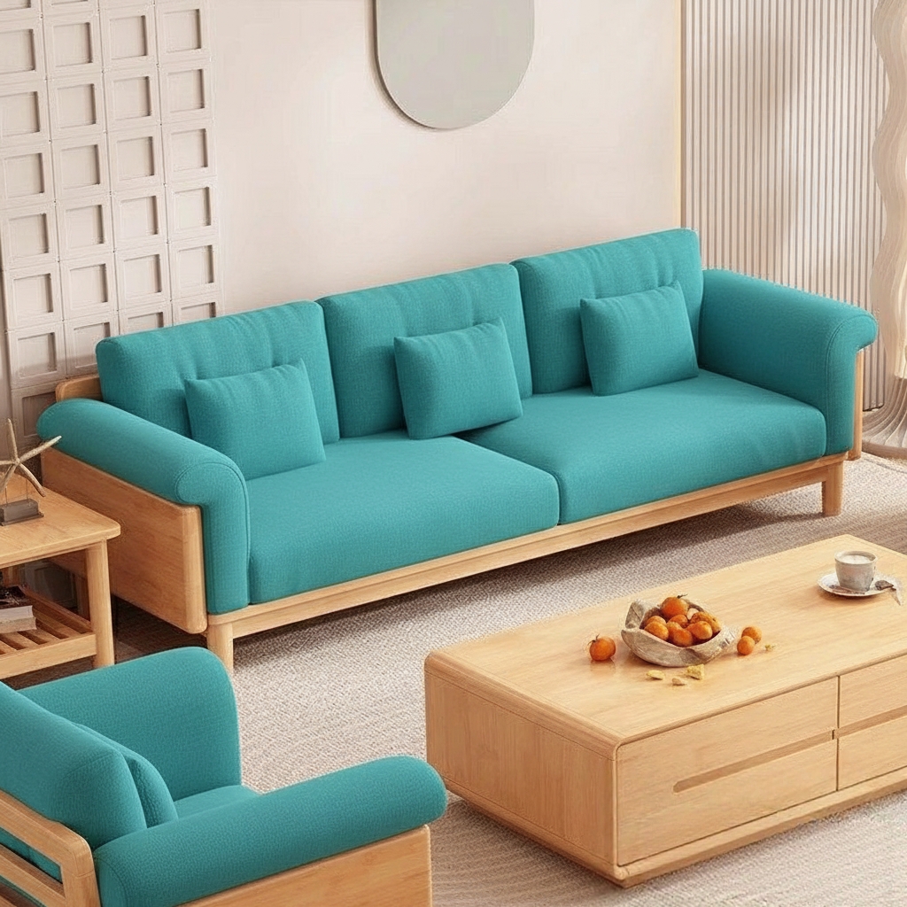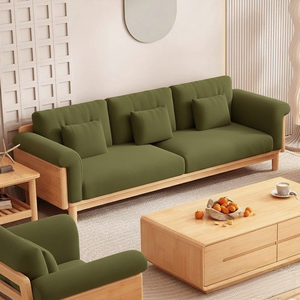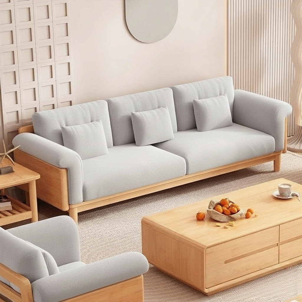 The Sorelle Natural Wood Sofa embodies refined Nordic minimalism, where clean lines meet warm, organic materials. Built with richly grained Acacia hardwood and upholstered in soft premium fabric, it offers both durability and subtle luxury. Its visually light profile, supportive seating, and natural textures make it a timeless centrepiece for contemporary living spaces, boutique cafés, and premium homestays.